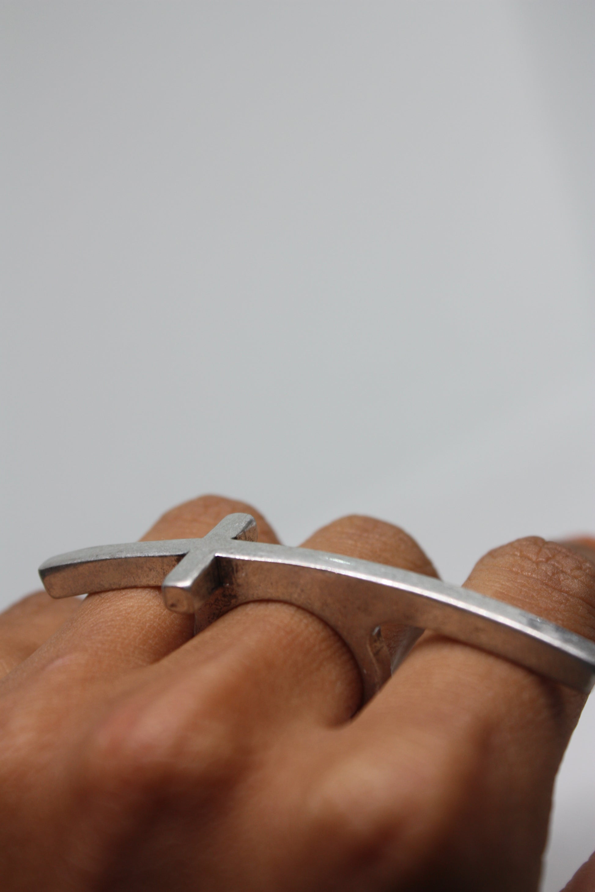 This cross ring is a personal favorite! It couldn't be more Avril Lavigne core! This bold bar ring is minimal, yet unapologetic, blending modern edge with a raw vintage style. This piece is so fun to style and stack! This statement piece might just become a staple piece for any fun look!