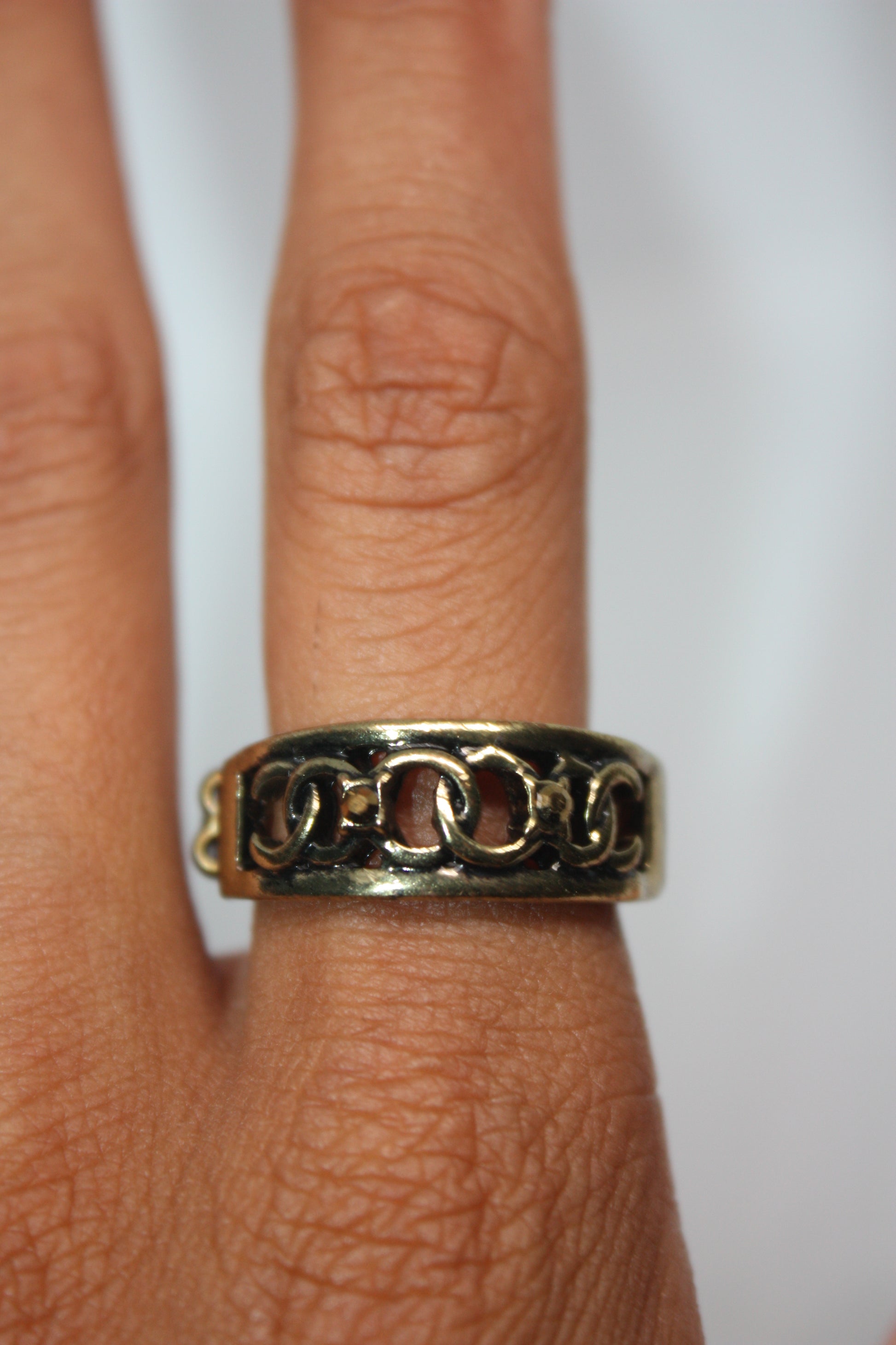 The Gold Bound ring is an adjustable ring with such a cool chain vibe detailing. This ring is a perfect blend of simple, and bold. It's bold and sleek, but not flashy and it has such a cute charm to it!