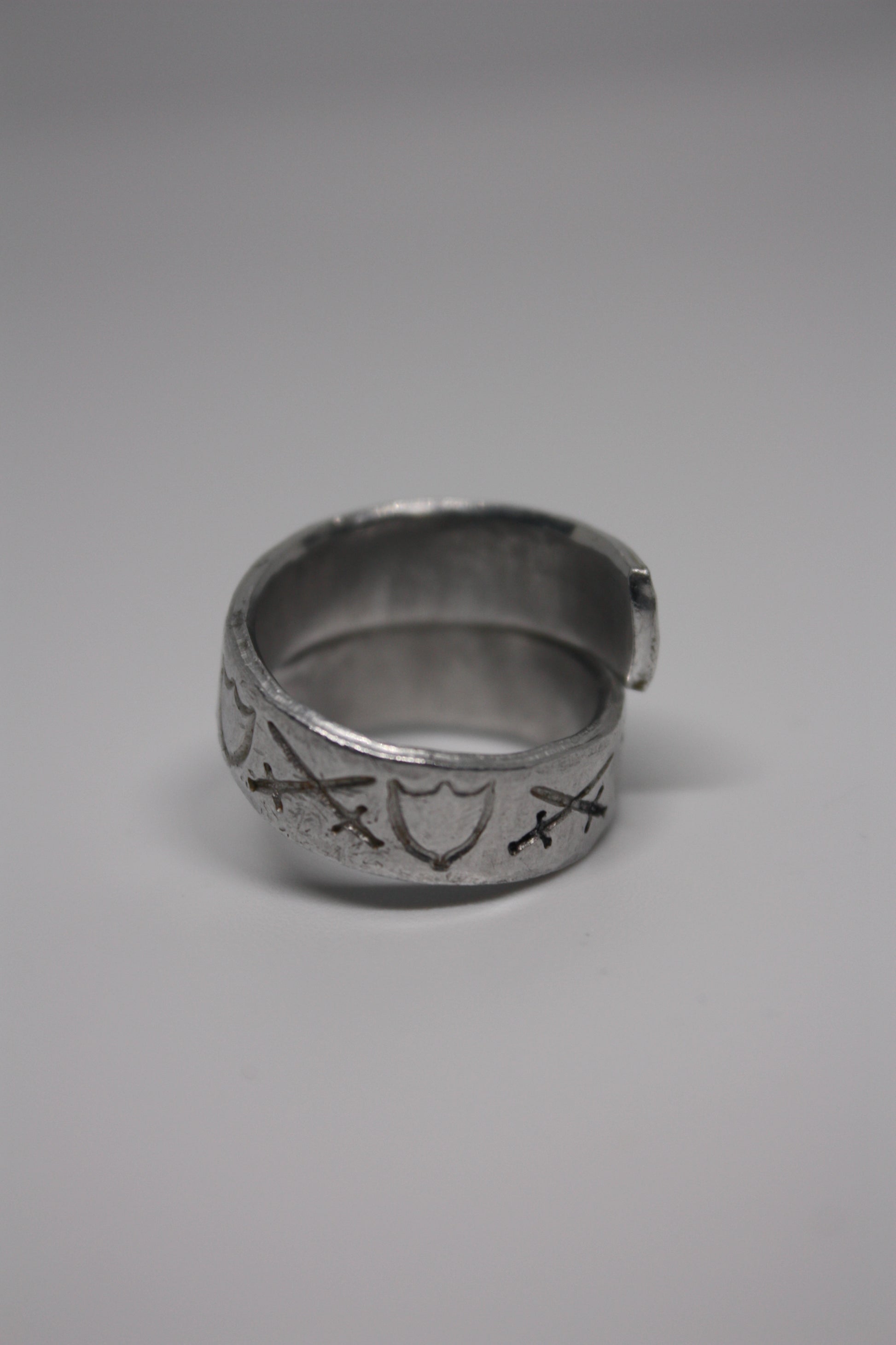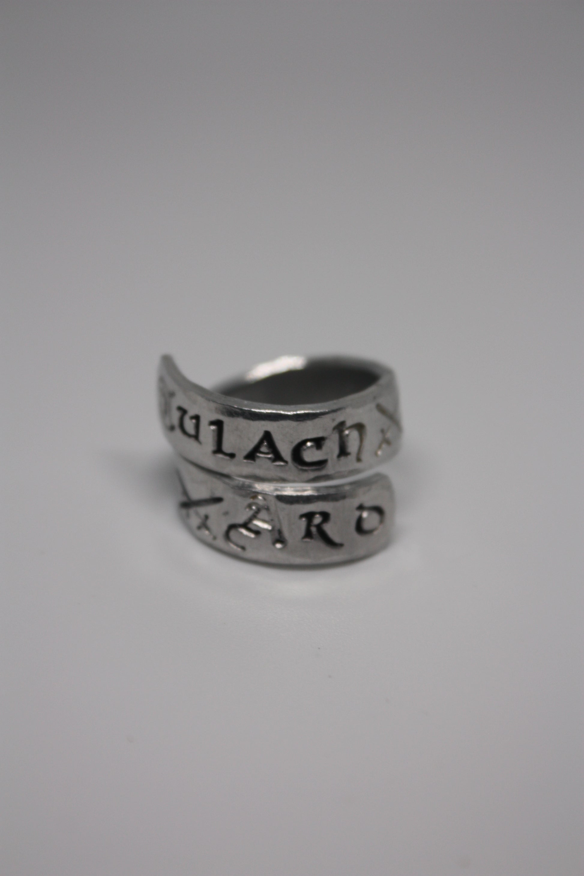 A chunky double-band wrap ring etched with gothic lettering? Yes please! This piece has a raw, distressed, grunge vibe to it and is so fun to layer and style!