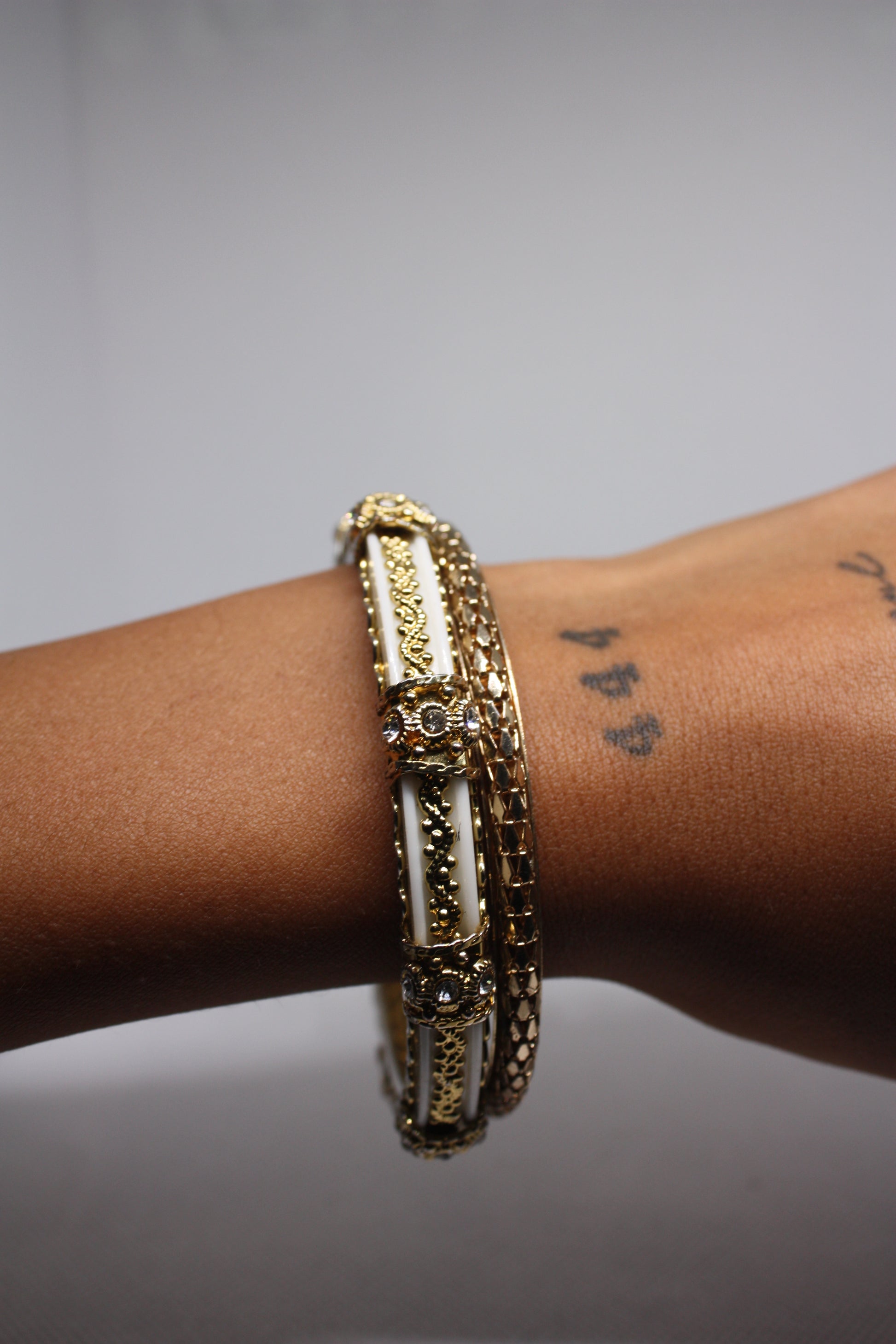 This pair is pure gold-drenched opulence. These sourced bangles are so gorgeous and perfect to elevate your stack. These bangles are such a statement and have stunning detail.